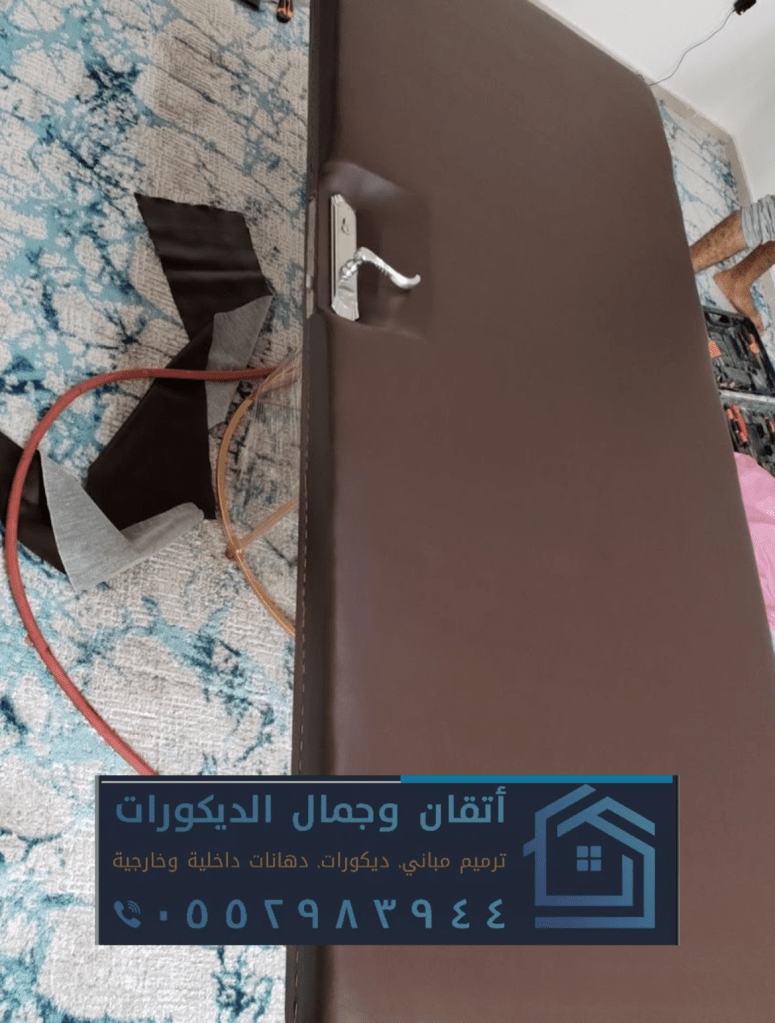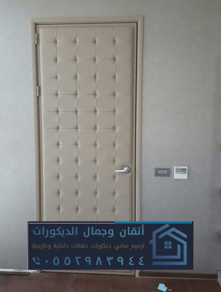 تركيب طبقات رقيقة من الصوف الصخري داخل هيكل الباب الخشبي أو المعدني. غالبًا ما يُدمج مع شرائح مانعة لتسرب الصوت حول حواف الباب